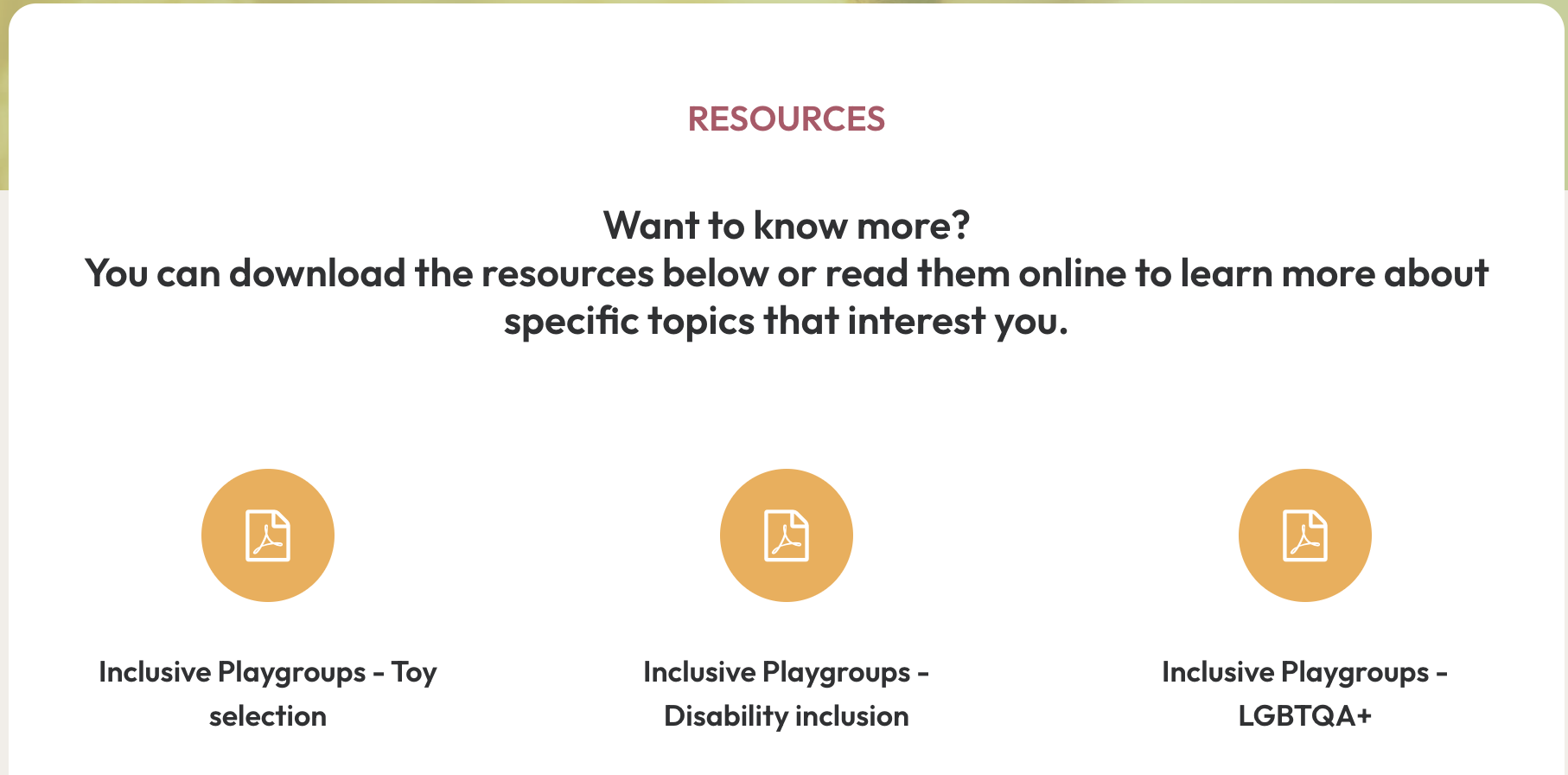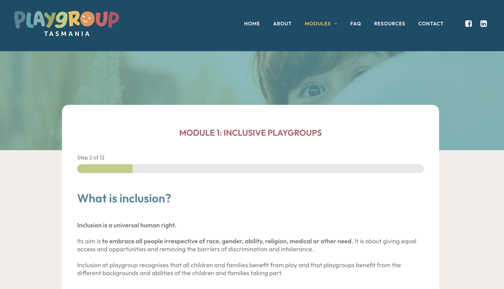 There are two interactive learning modules which provide information, support and resources about creating welcoming, safe (inclusive) spaces for your parents and children, and ensuring playgroups are child safe, child friendly spaces.